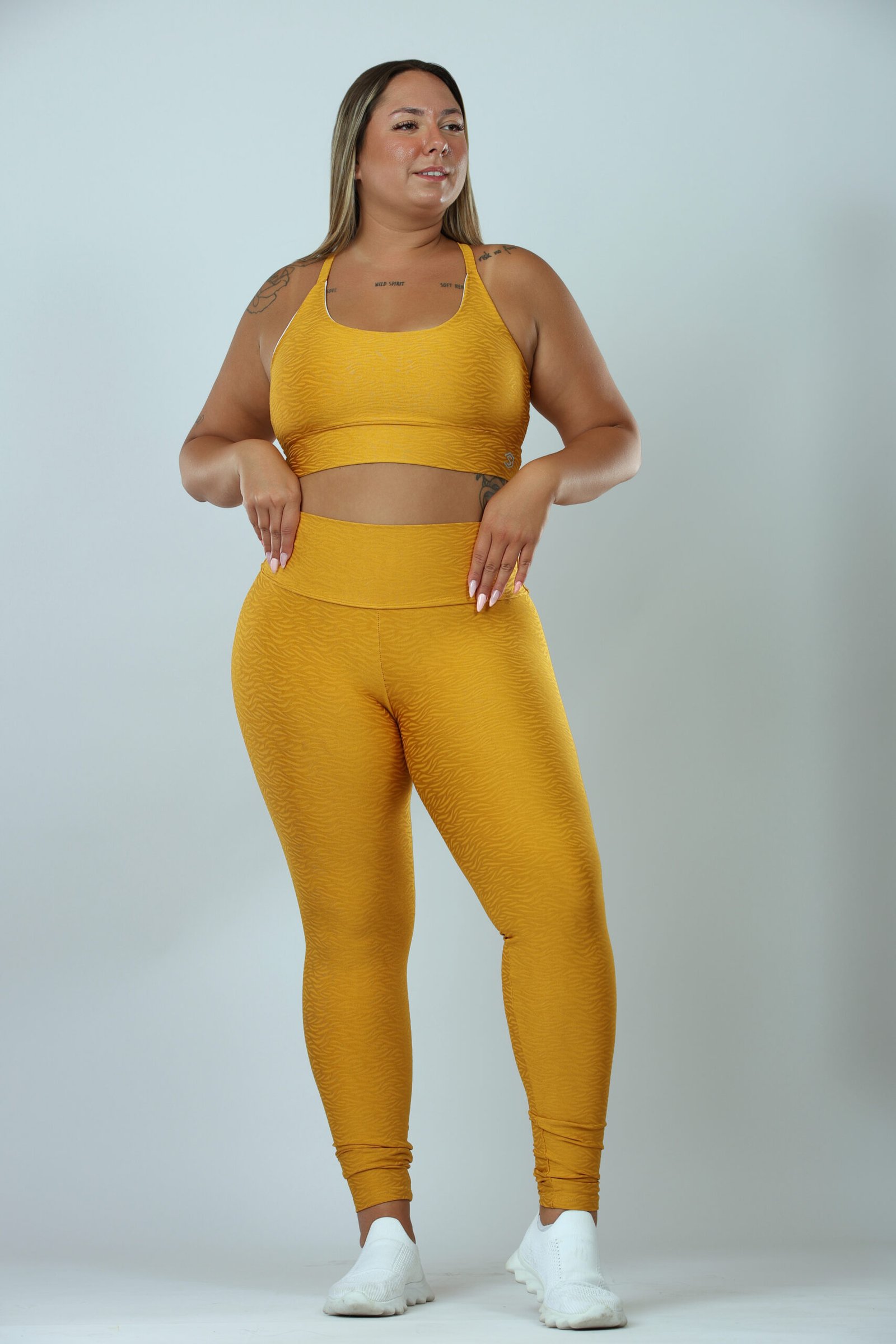 טייץ ארוך בגזרה גבוהה מבד איכותי, אוסף ומחטב בלי ללחוץ, עם טקסטורת בד מעניינת שנותנת טאצ’ מיוחד. לוק נינוח, נשי ומדויק – שמתאים לכל שעה ביום.