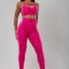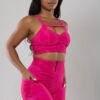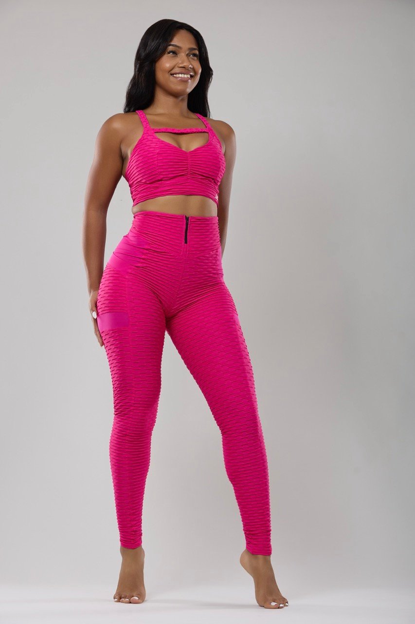 סט מבד מחטב. טיץ בגזרה גבוהה עם כיסים. טופ מגיע עם קאפים בחזה כך שלא צריכה חזייה. הקאפים ניתנים להסרה במידת הצורך.