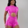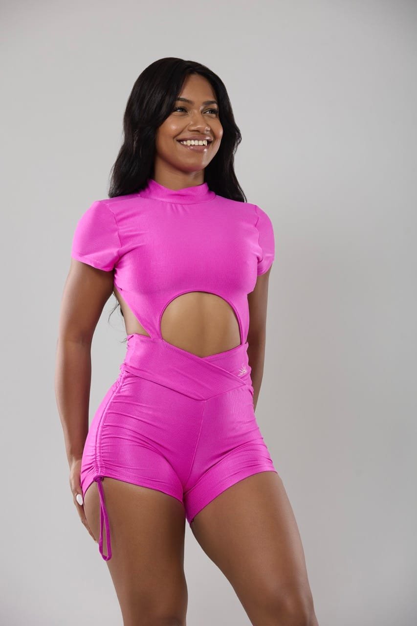 ניתן לכווץ את האוברול בירכיים למראה קצר יותר. קיים בצבע ורוד בלבד.